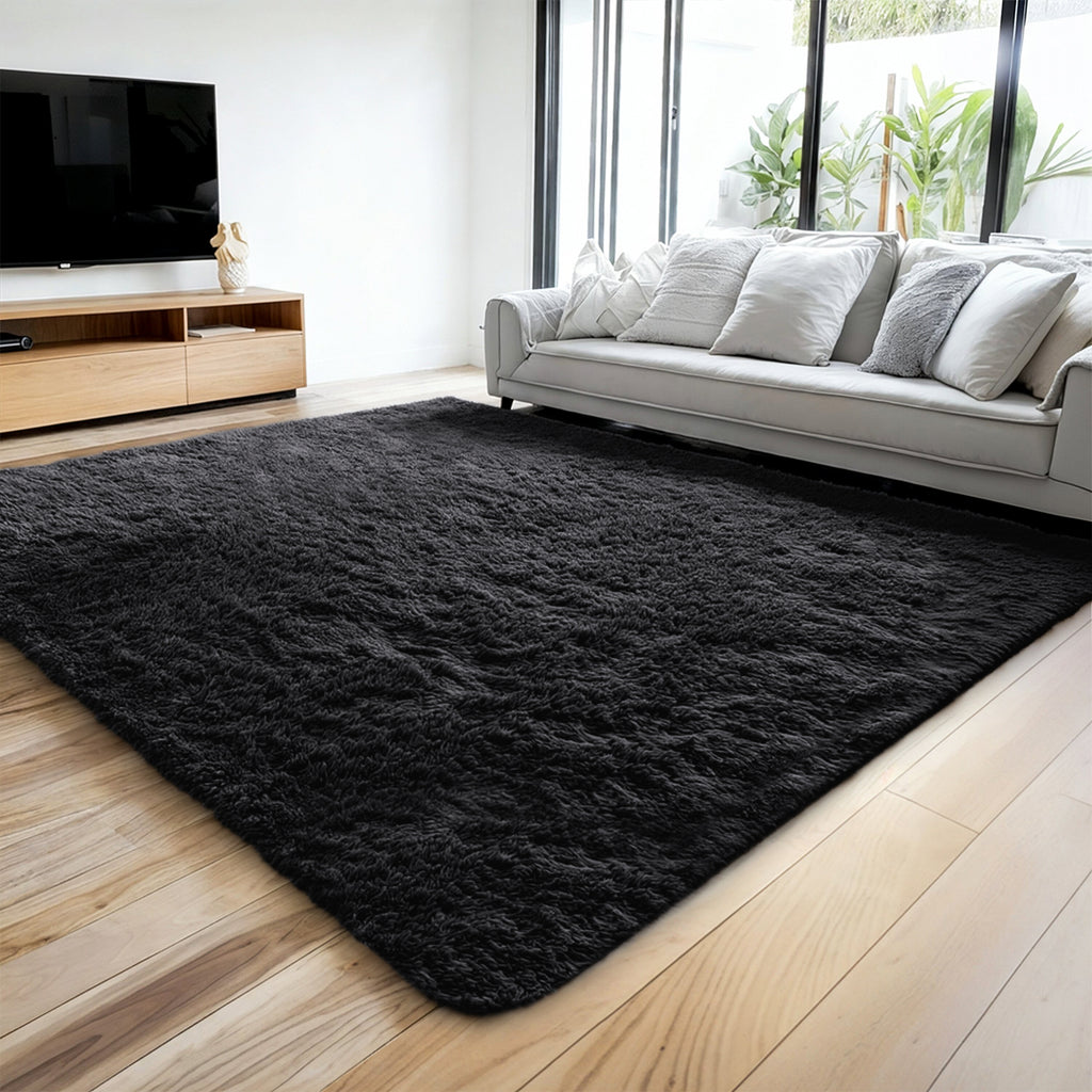 Our super soft shaggy Large Black Rug with extra thick pile height offers luxurious sinkin comfort. Rest your feet on the cozy rug and relax your tired body and mind. Keep you warm in winter weather. Which have excellent resistance to stains and are skin friendly. Our perfectly crafted Large Black Rug can be used in multiple rooms, such as living room, bedroom, hallway, kids room, study room, lounge and so on. Our rugs are suitable for all year-round use.